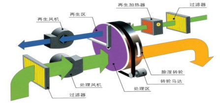 轉(zhuǎn)輪除濕機(jī)組工作原理: